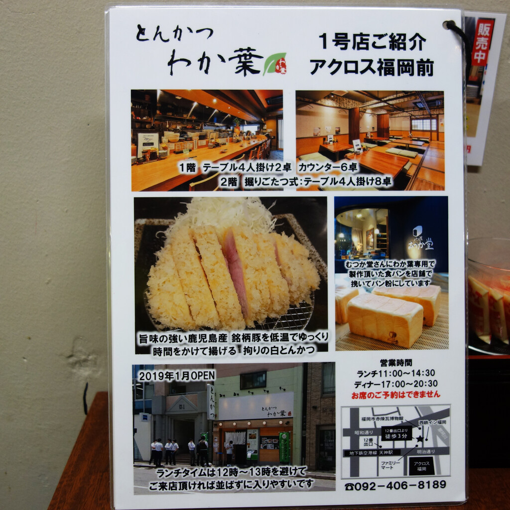 天神のアクロス福岡向かいにある、とんかつ専門店『わか葉』の2号店になります。