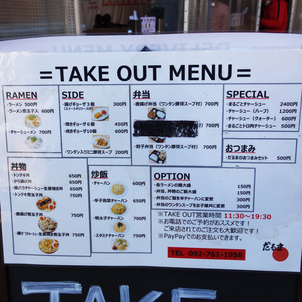 テイクアウトメニュー。