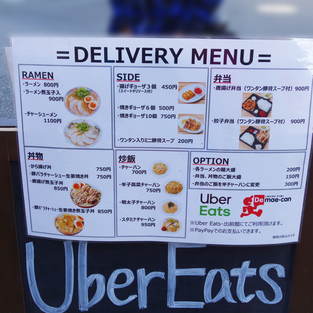 デリバリーメニュー(ウーバーイーツ/出前館)です。
