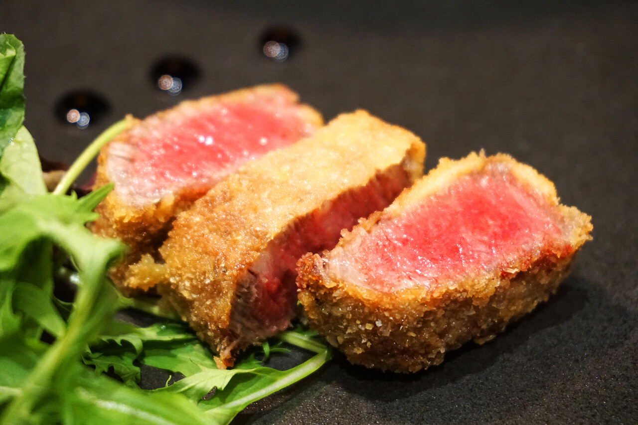 一緒に提供される牛ヒレのレアカツも絶品です。