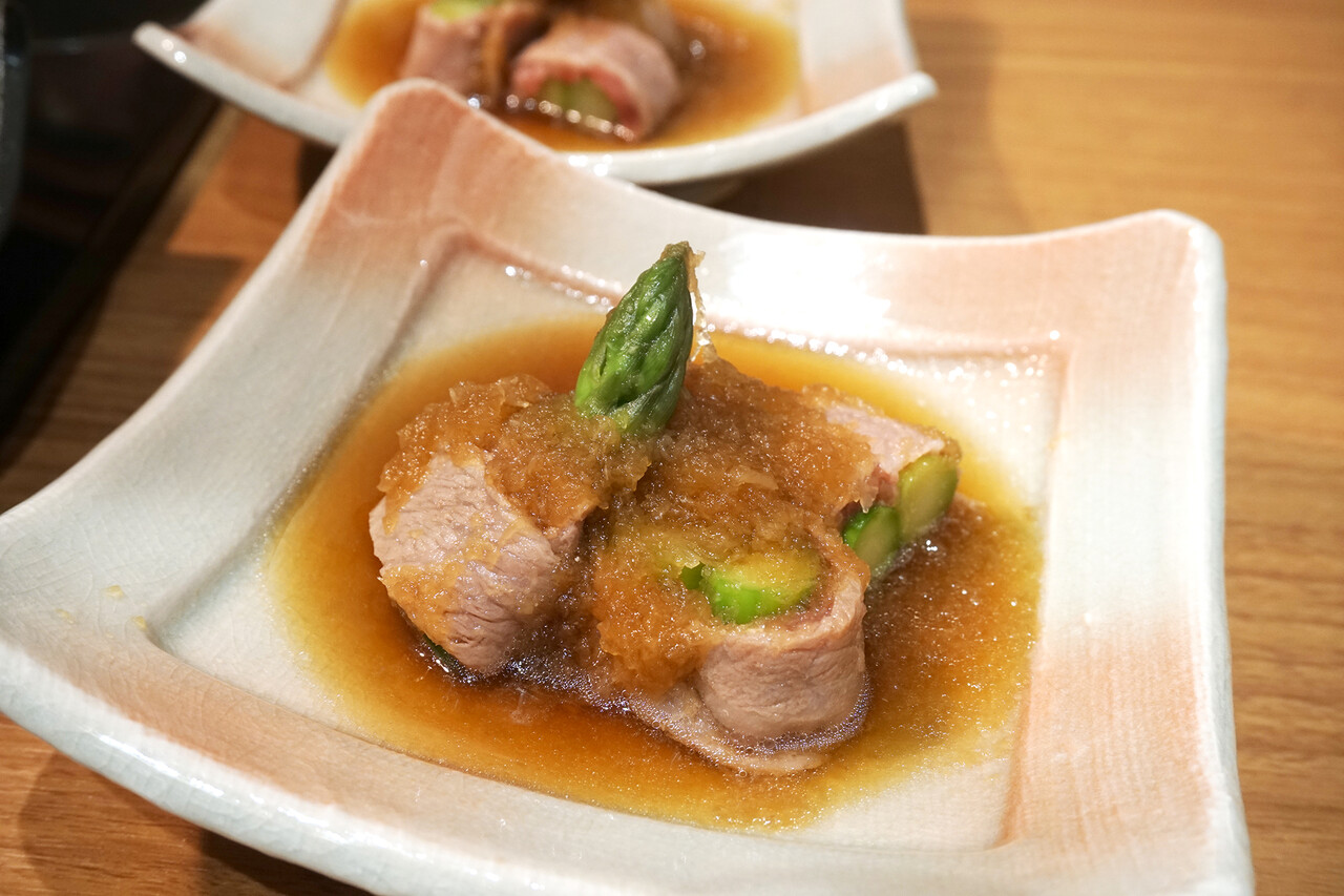 アスパラのサクサク感とほどける柔らかさの牛ロース。