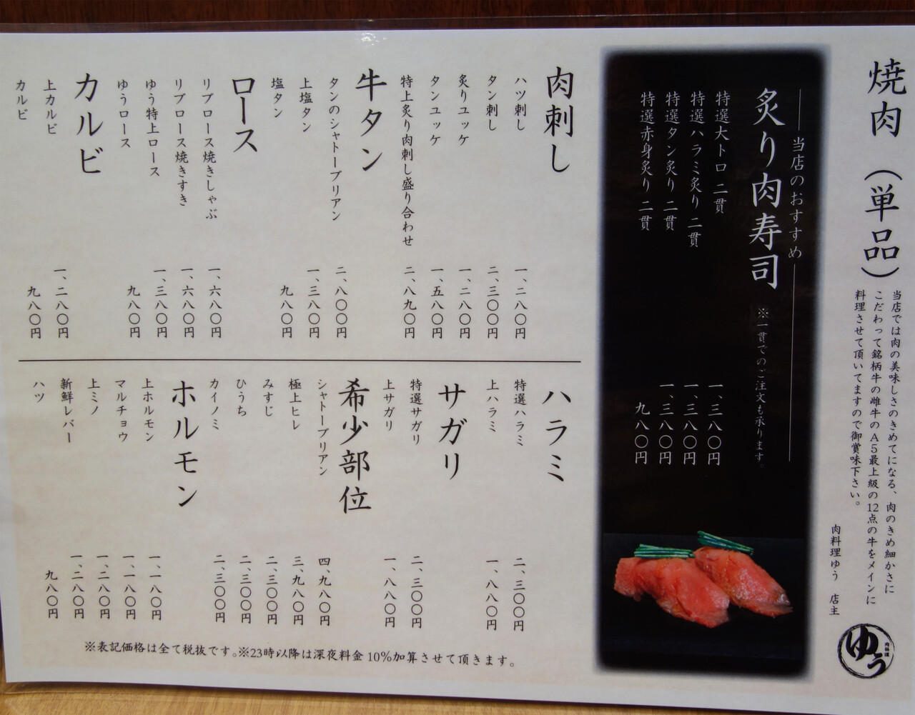肉料理ゆう (焼肉 / 中洲川端駅、祇園駅、呉服町駅)