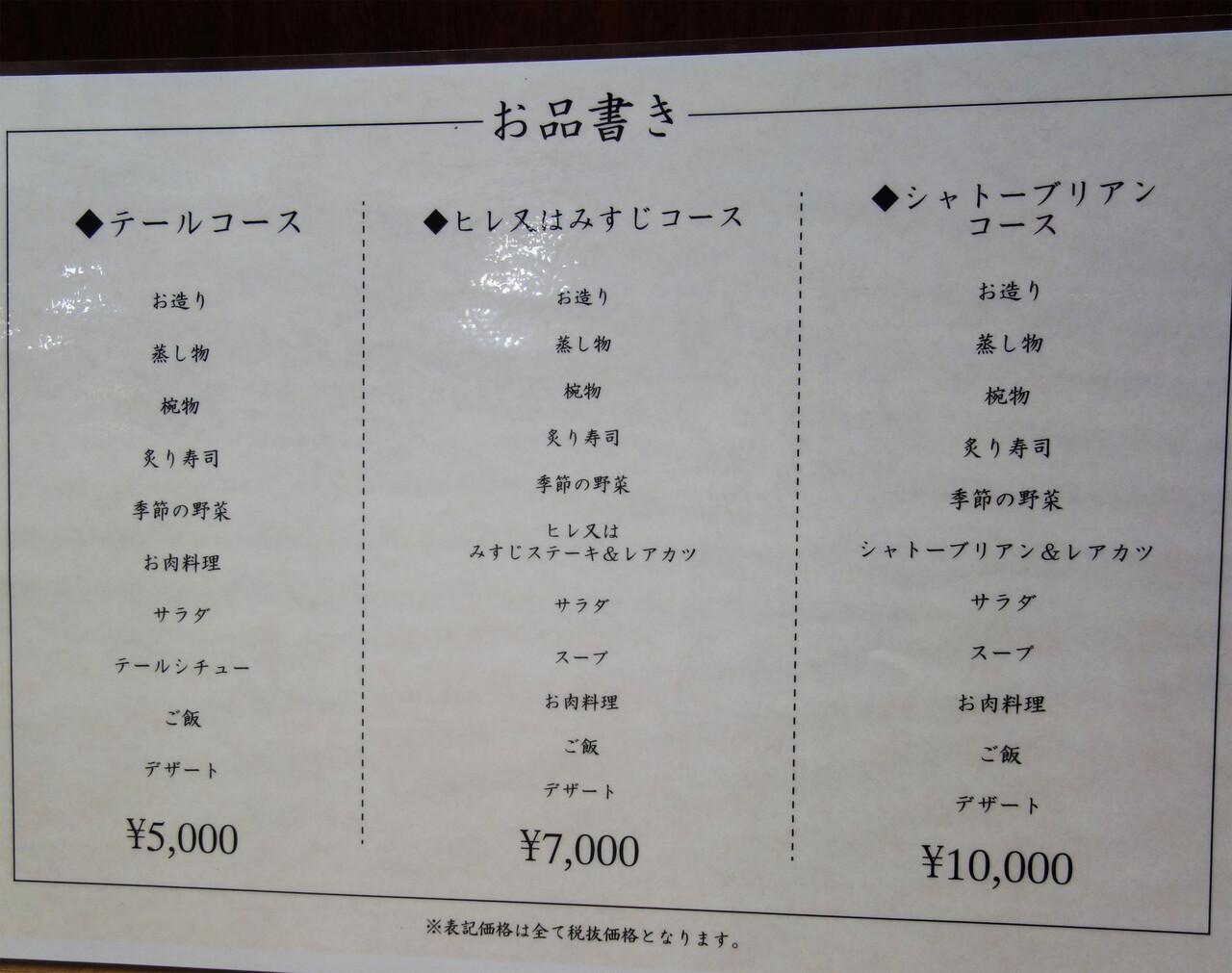 今回はコース料理を頂きましたが、単品メニューもあります。