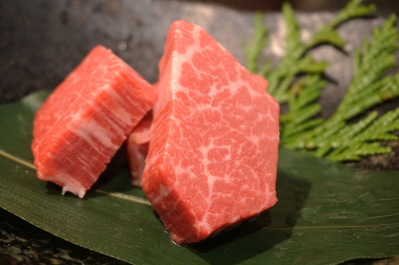 見ただけで旨いとわかる美しい霜降り、さすがA5ランクオーバーの風格を感じます。