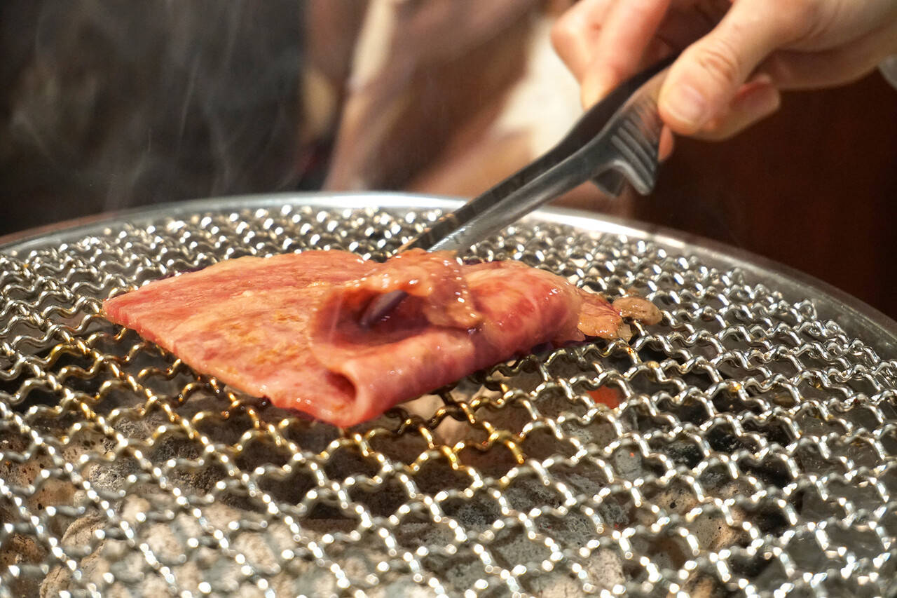 コースの焼肉や焼きしゃぶは、焼き師の方が卓上の七輪でベストに焼き上げてくださるので、