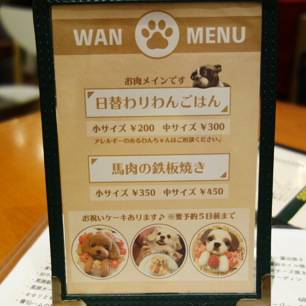 わんこ用のメニューもあります。※お水はサービスで頂けます。