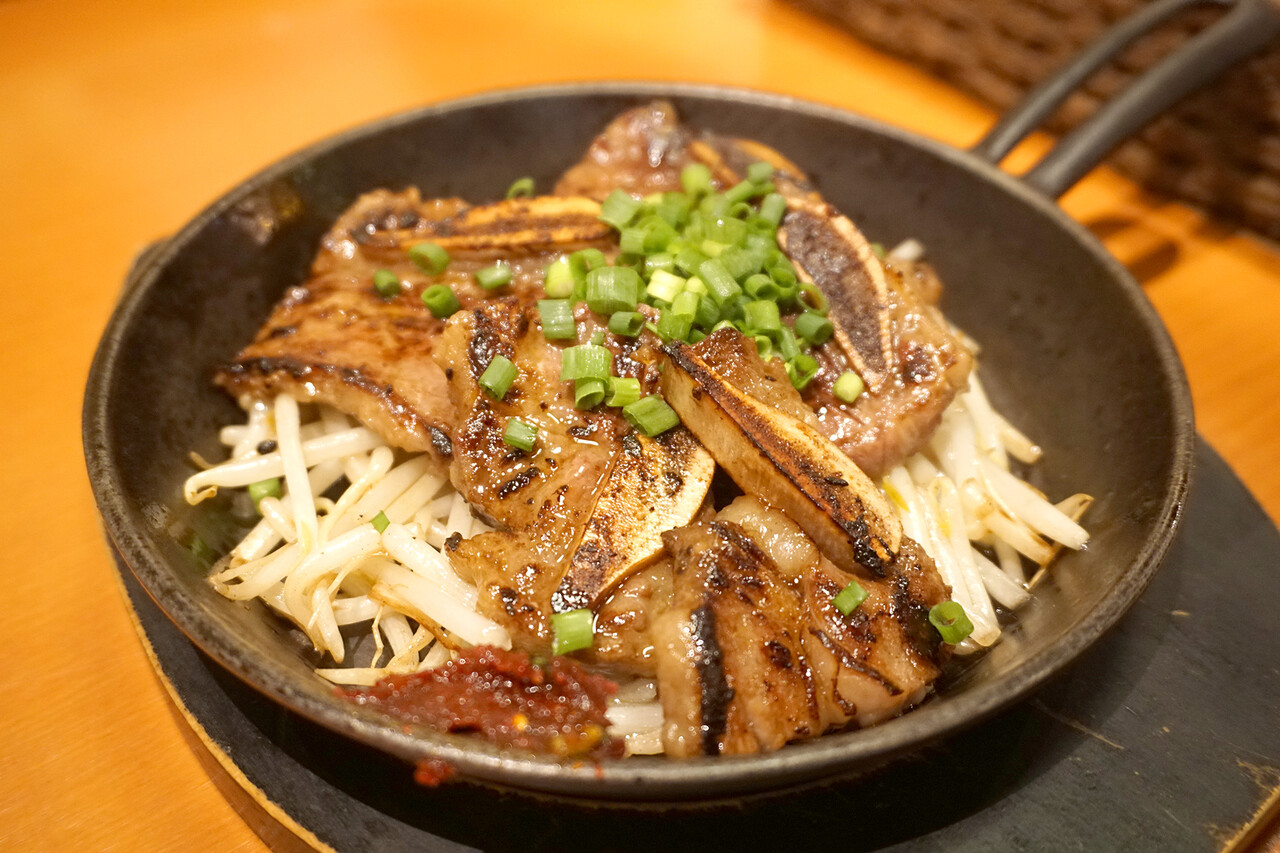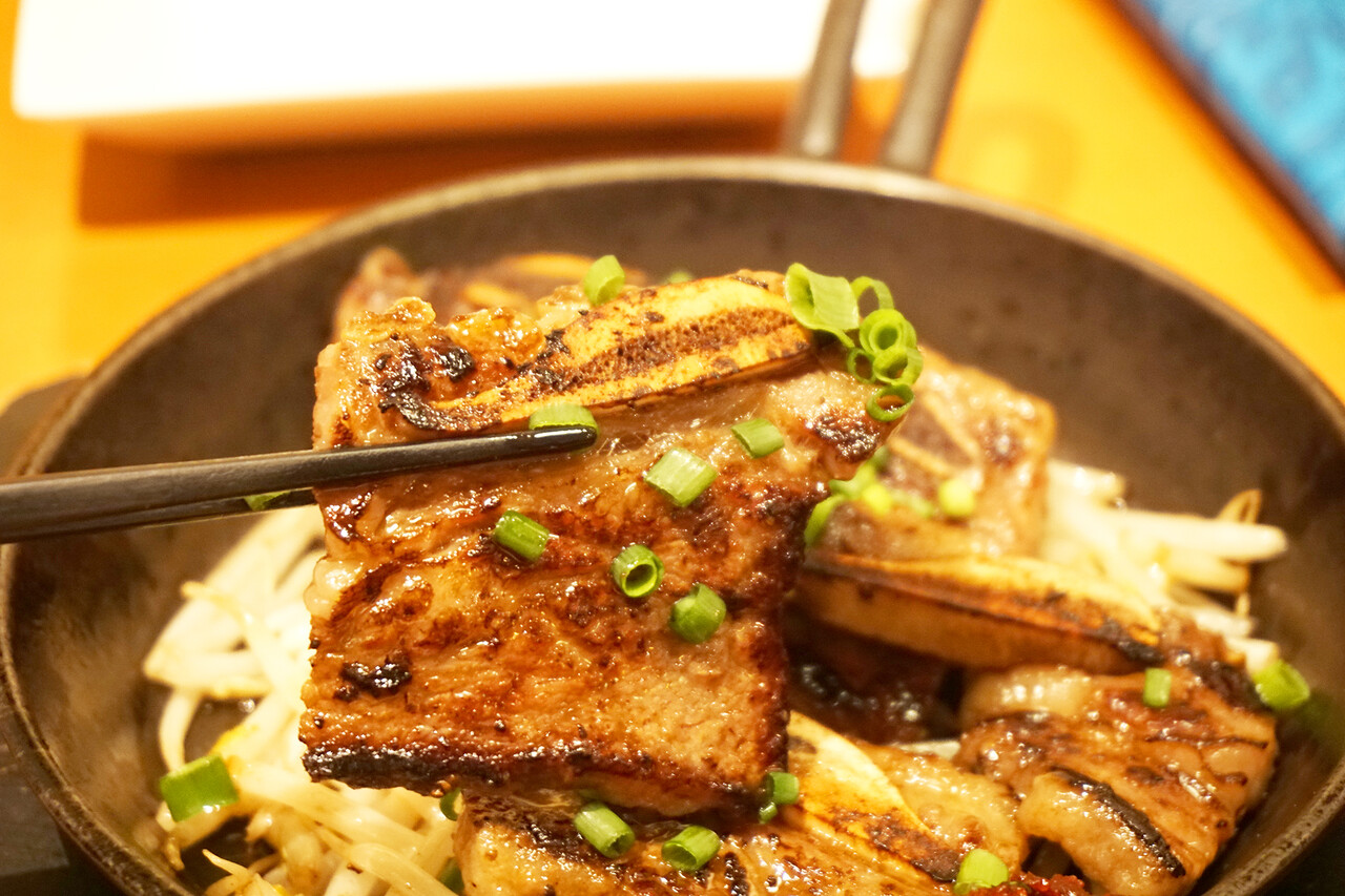 特製薬味ダレに漬け込んだ、柔らかくて冷めても美味しい骨付カルビです。