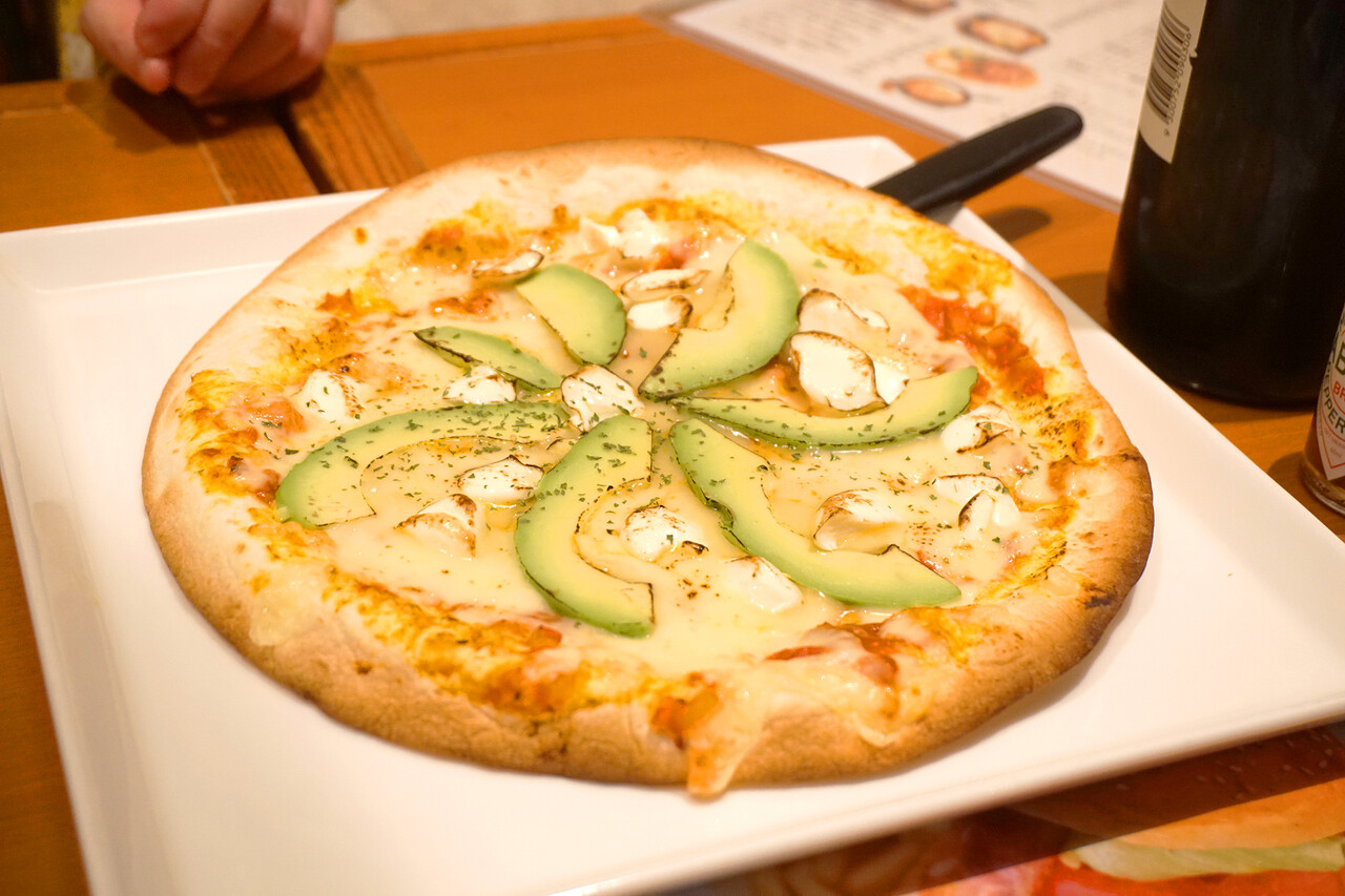 クリームチーズとアボカドのピザ。