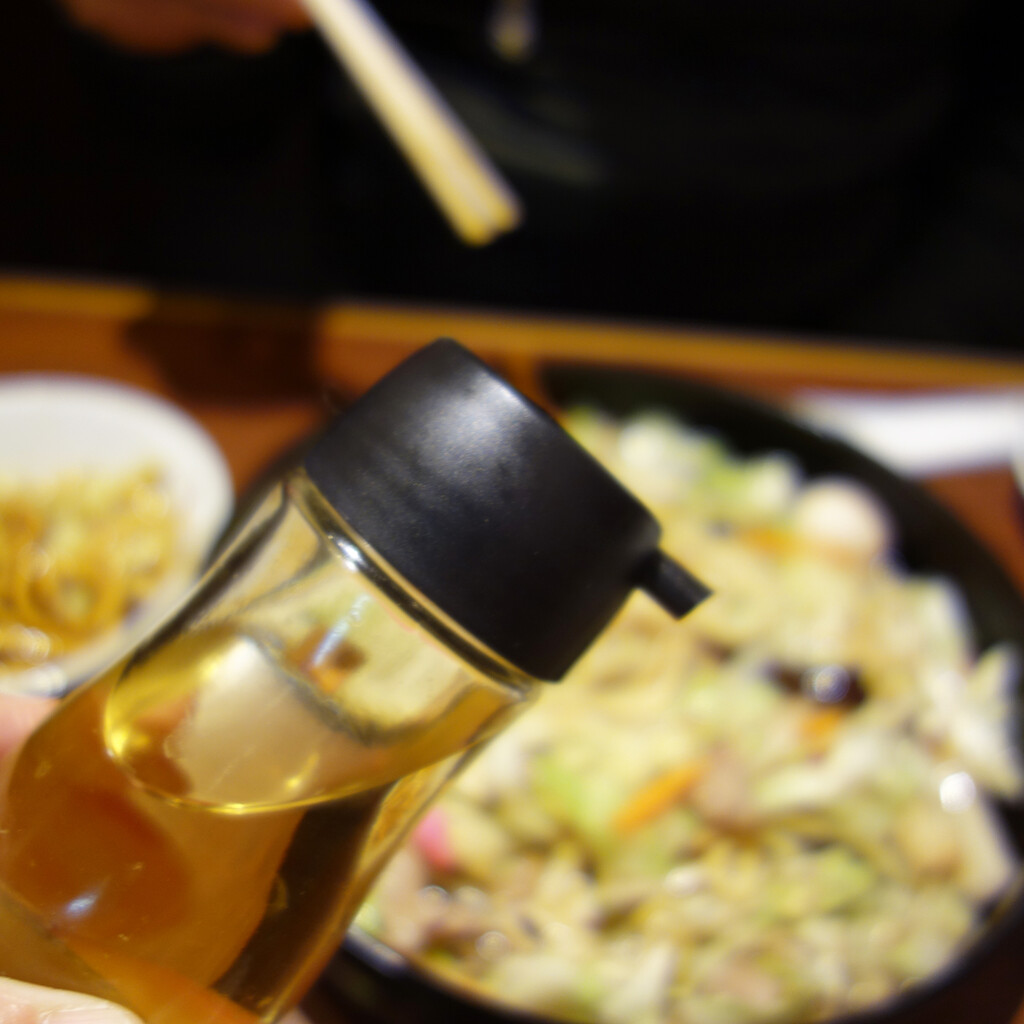 お店のスタッフがオススメしてくれた卓上の酢をかけると、あっさり頂けます。