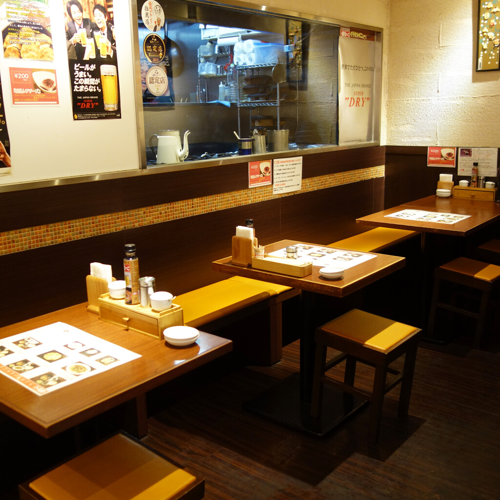 ガラス張りの向こうでは、鉄なべ餃子を焼いている様子を見られます。