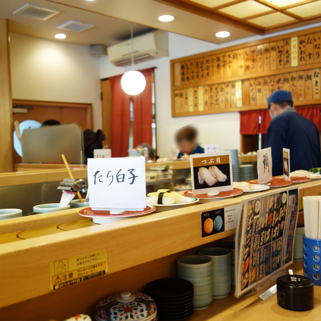 かなりこじんまりしたお店なので、街中や郊外の回転寿司店より地元感があって、