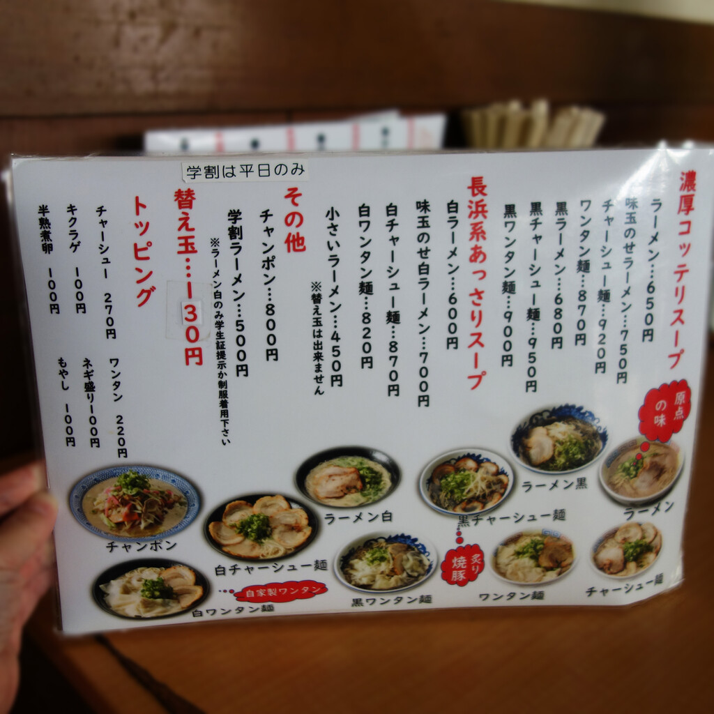 豚骨ラーメンは、濃厚コッテリスープと長浜系あっさりスープの2種類があります。