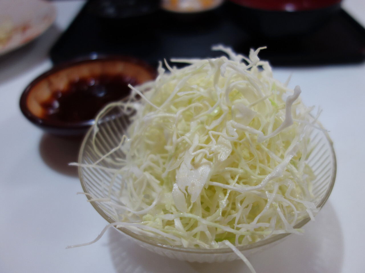 ご飯はおかわり自由・キャベツのおかわりは1回まで無料。