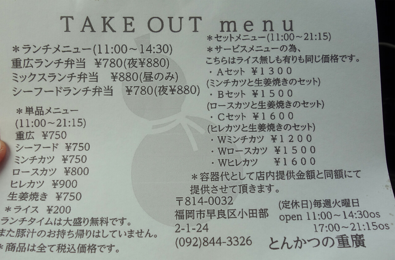 重廣 (とんかつ / 室見駅、次郎丸駅、藤崎駅)
