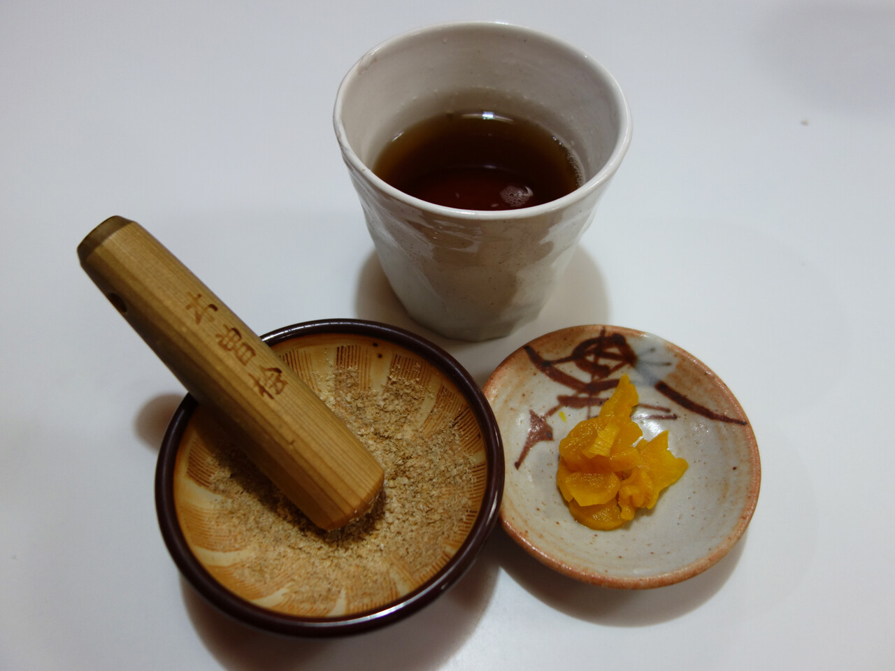 まずは、お茶・漬物・小さなすり鉢が来ました。