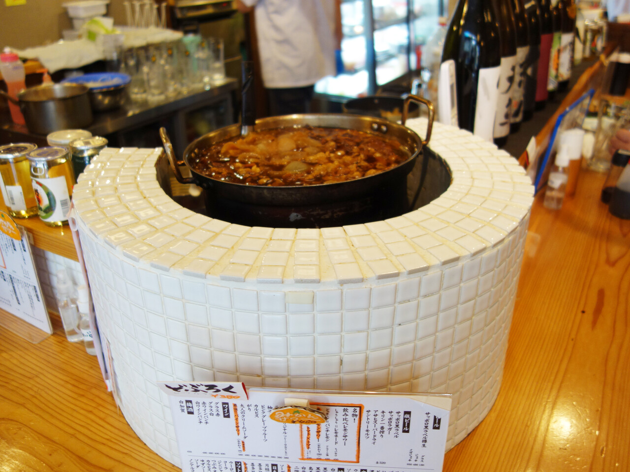カウンター席のコーナーにあった大鍋の肉豆腐。