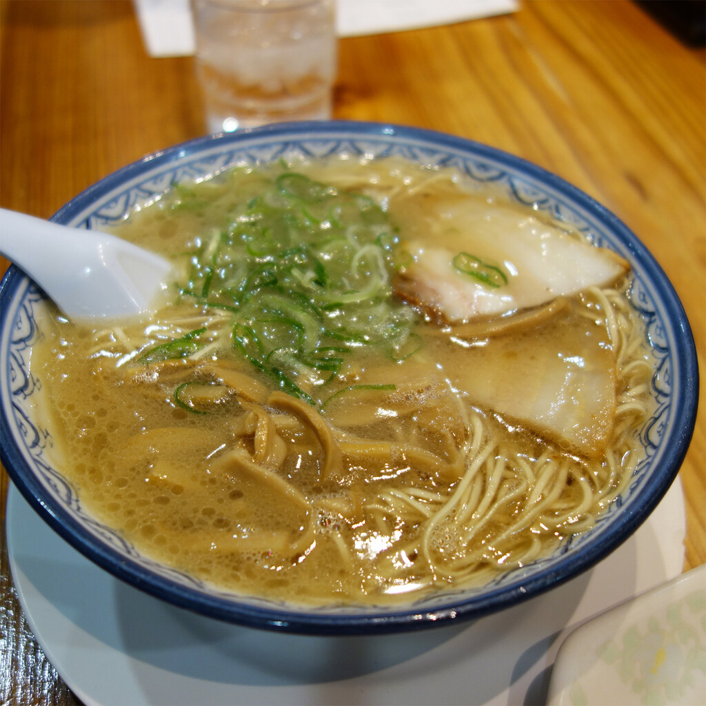 濃厚豚骨に細い平打ち麺のラーメンがとっても美味しいお店です。