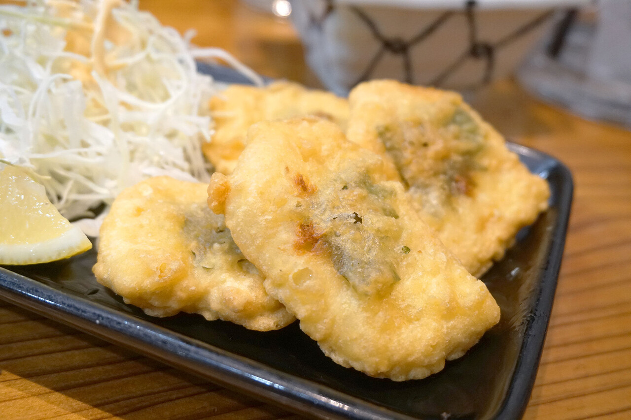 今回は、居酒屋利用で『鶏皮ぎょうざ』400円・『鳥天(梅しそ)』400円・『蓮根挟み揚げ』400円