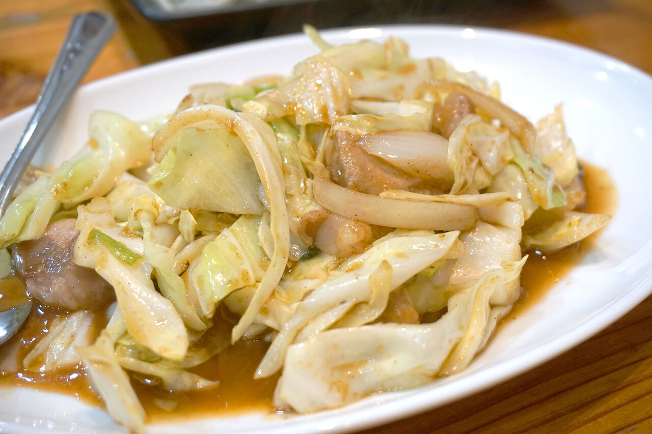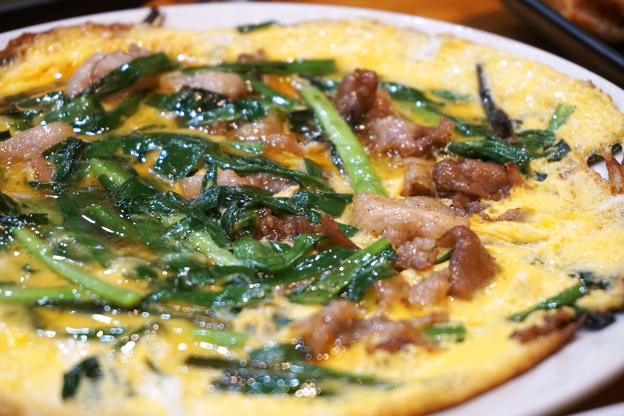 『ニラの卵とじ』650円・『ホルモン炒め』700円などを頂きました。