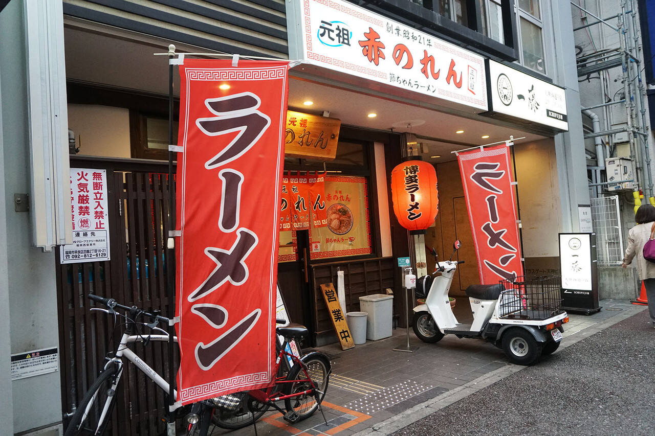 天神西通りの『元祖赤のれん 節ちゃんラーメン 天神本店』。