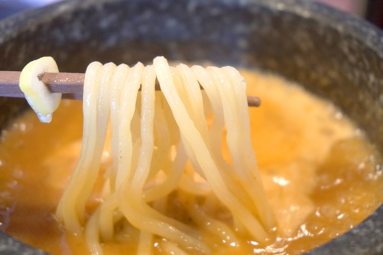 オリジナル中太麺は、滑らかで食べやすいです。