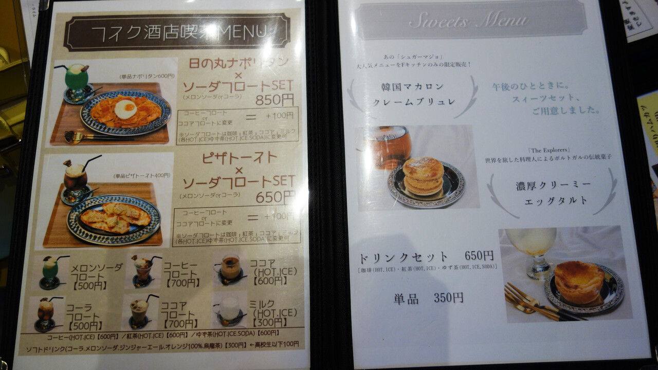 こちらは『フスク酒店』のコーヒー・軽食・スイーツメニュー(お酒もあり)。
