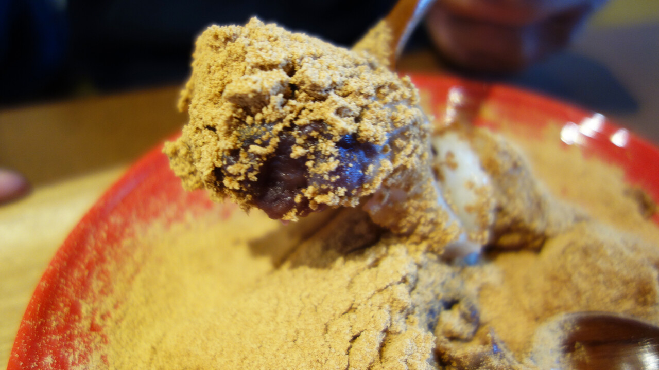 こちらは焼き上げず、柔らかく茹でて、きなこをたっぷりまぶしたもの。