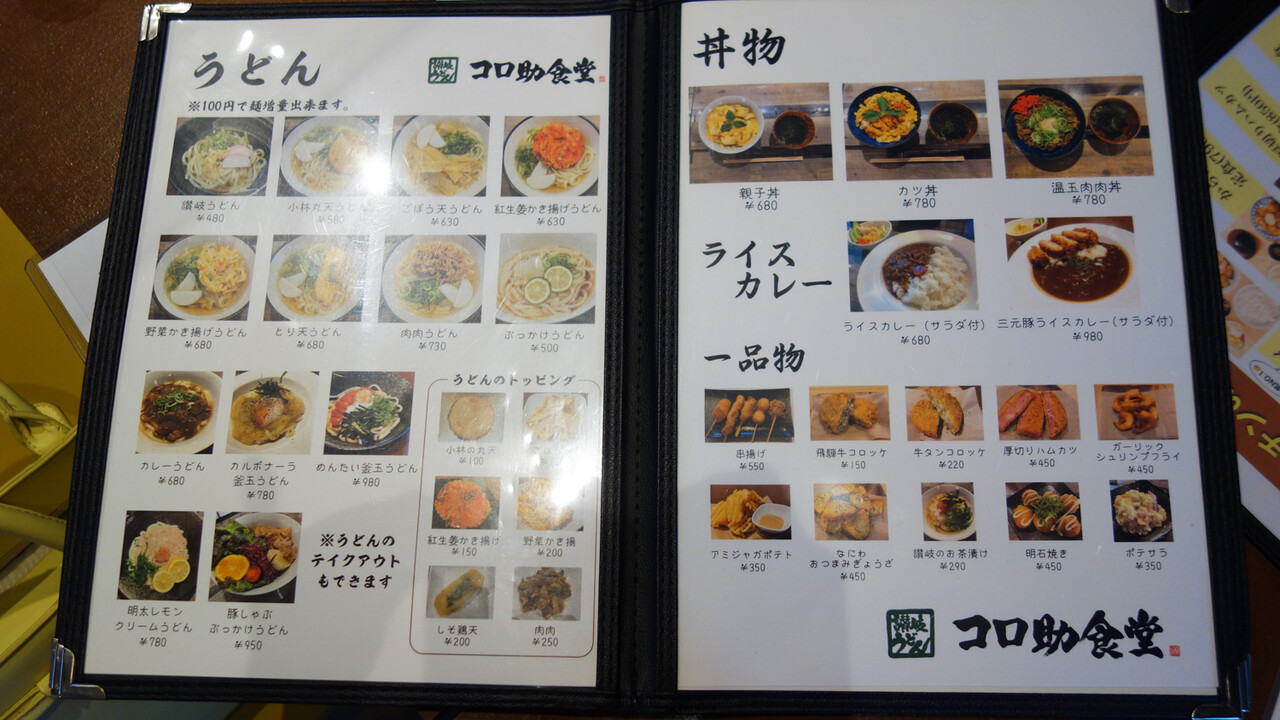 こちらは讃岐うどん『コロ助食堂』の単品メニューです。