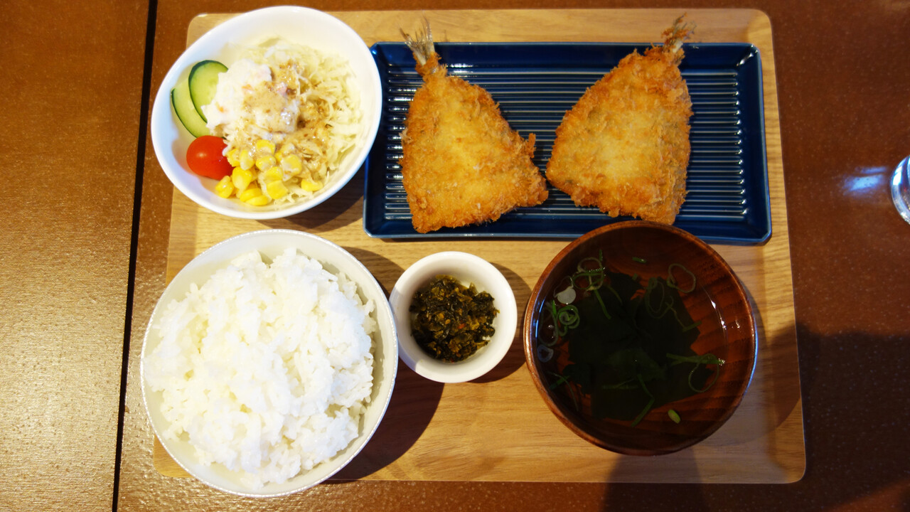 松浦のアジフライ定食950円。