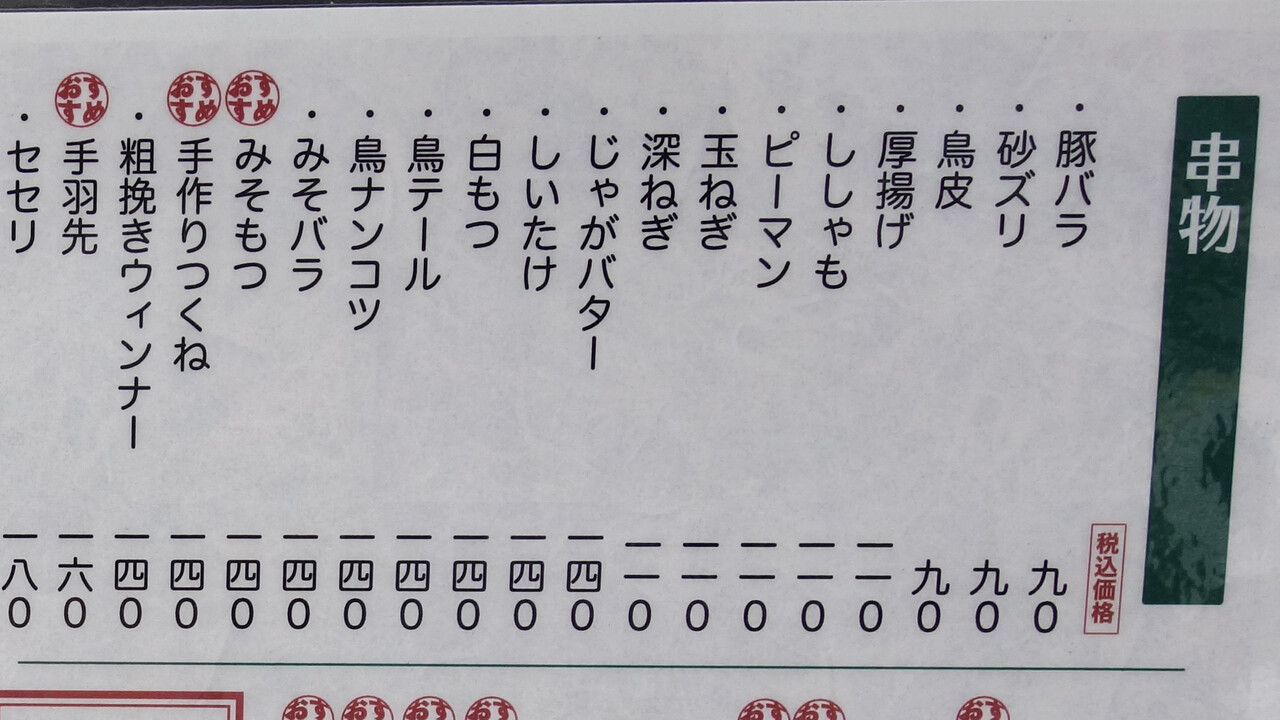 よく食べる串が90円というのは嬉しいですね。