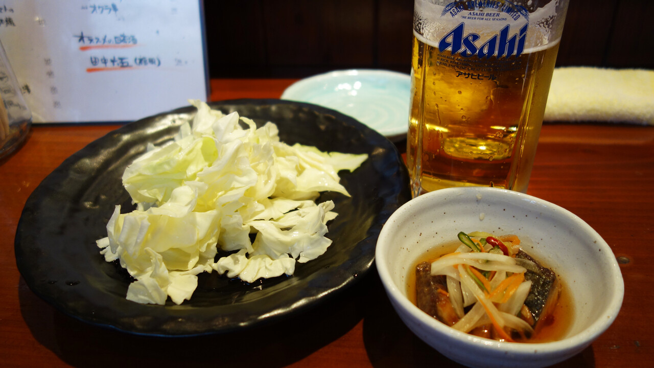 最初に出て来るのは、博多焼鳥の友であるキャベツのざく切り、