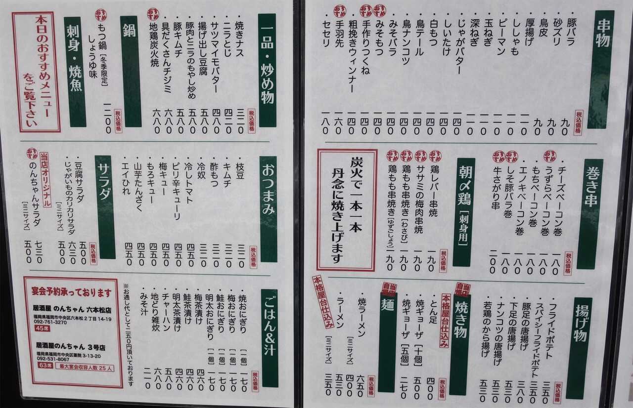 居酒屋のんちゃん 3号店 (焼き鳥 / 薬院大通駅、薬院駅、渡辺通駅)