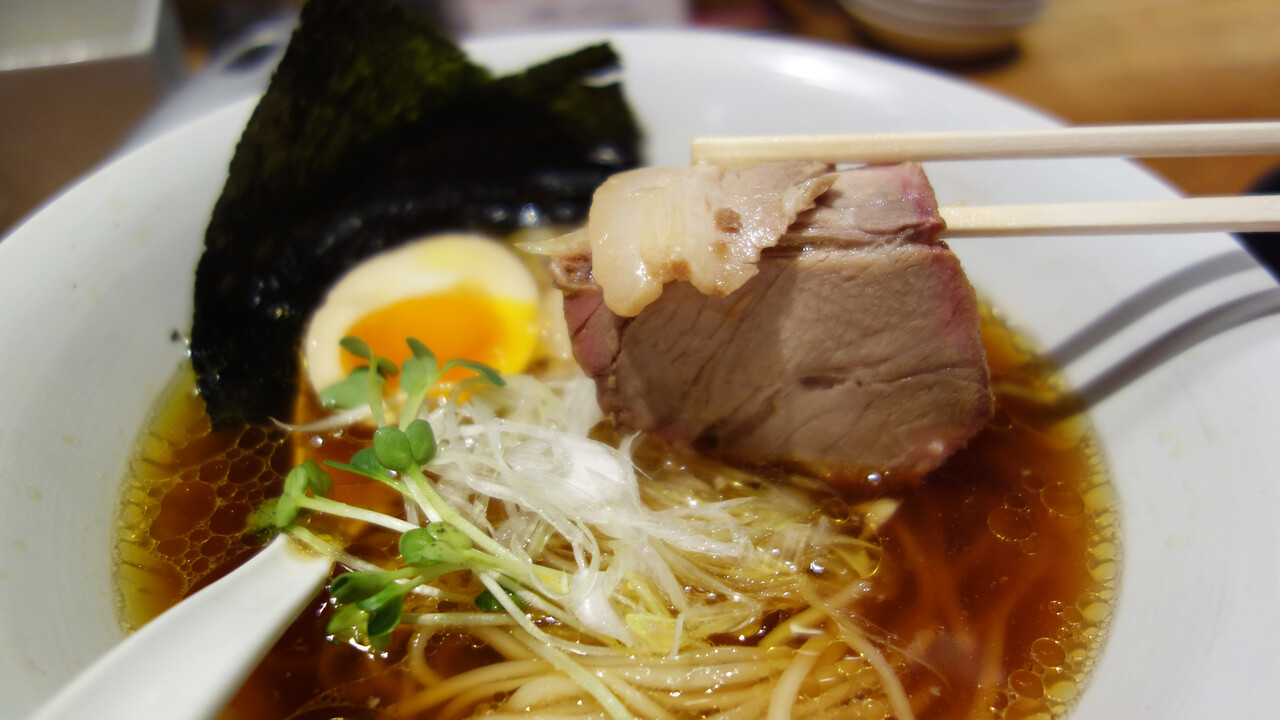 豚清湯に地元の老舗醤油メーカー『ジョーキュウ醬油』の醤油を使ったタレが効いています。
