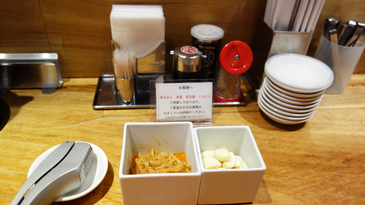 辛もやし・辛子高菜・紅ショウガ・にんにくはリクエスト制です。