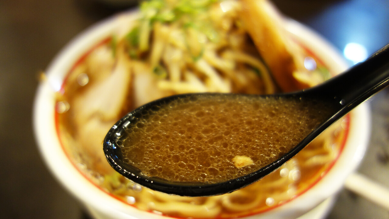スープは醤油豚骨で、結構甘めの醤油味です。