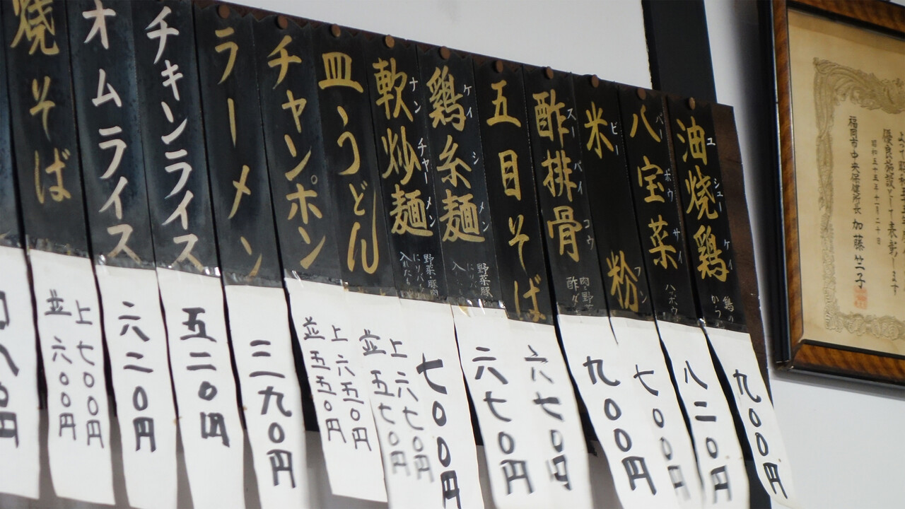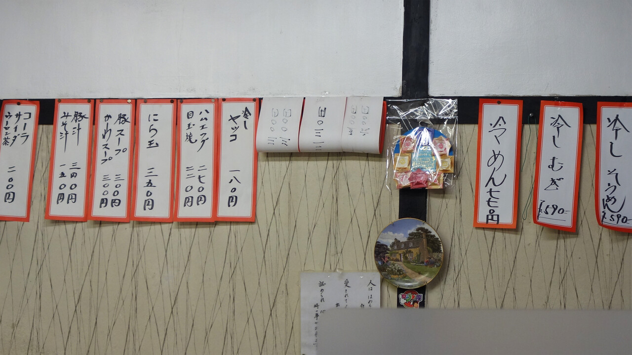 壁面にずらりと貼ってあるメニュー札。