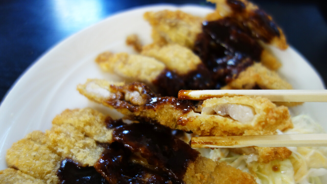 でも、薄いお肉を覆う衣がカリカリで、クリスピーな食感がいいのです!