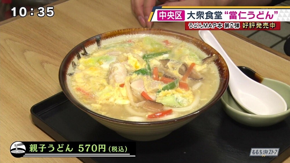 看板メニューは『親子うどん』で、鶏肉、ネギ、シイタケなどをふわふわの玉子でとじたうどんだそうです。