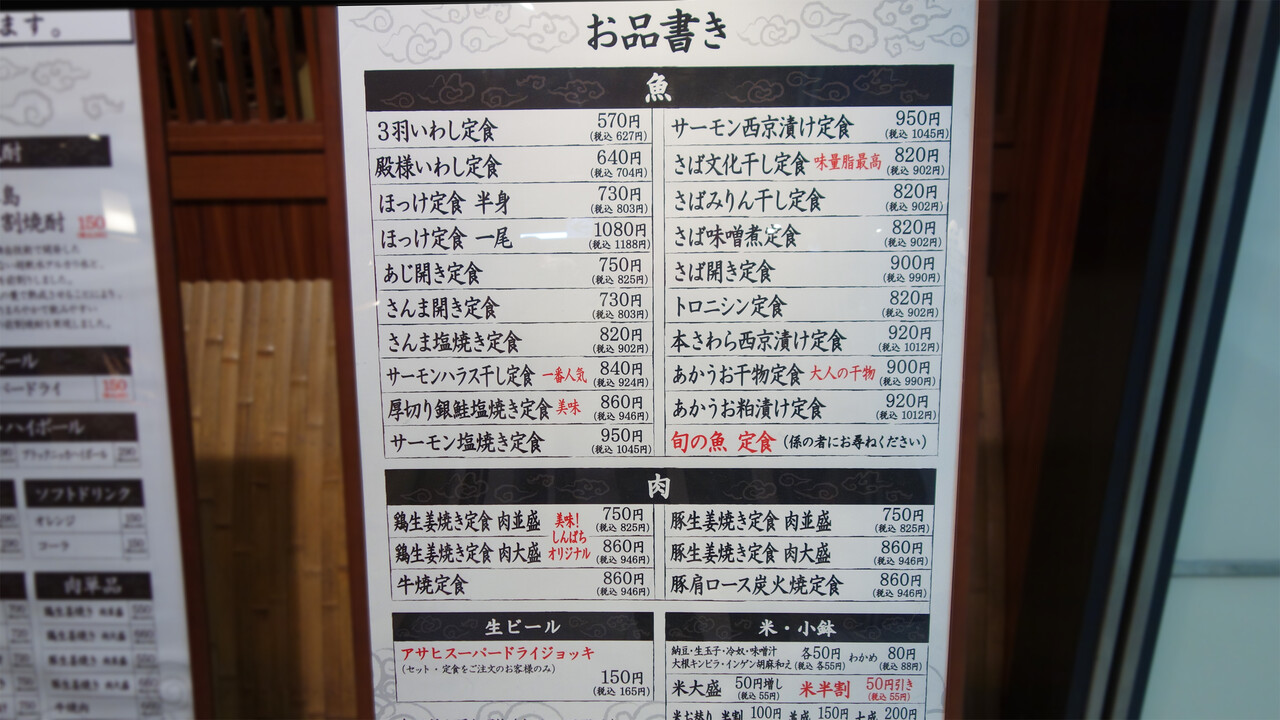 魚の干物定食がメインですが、お肉定食も数種類あります。