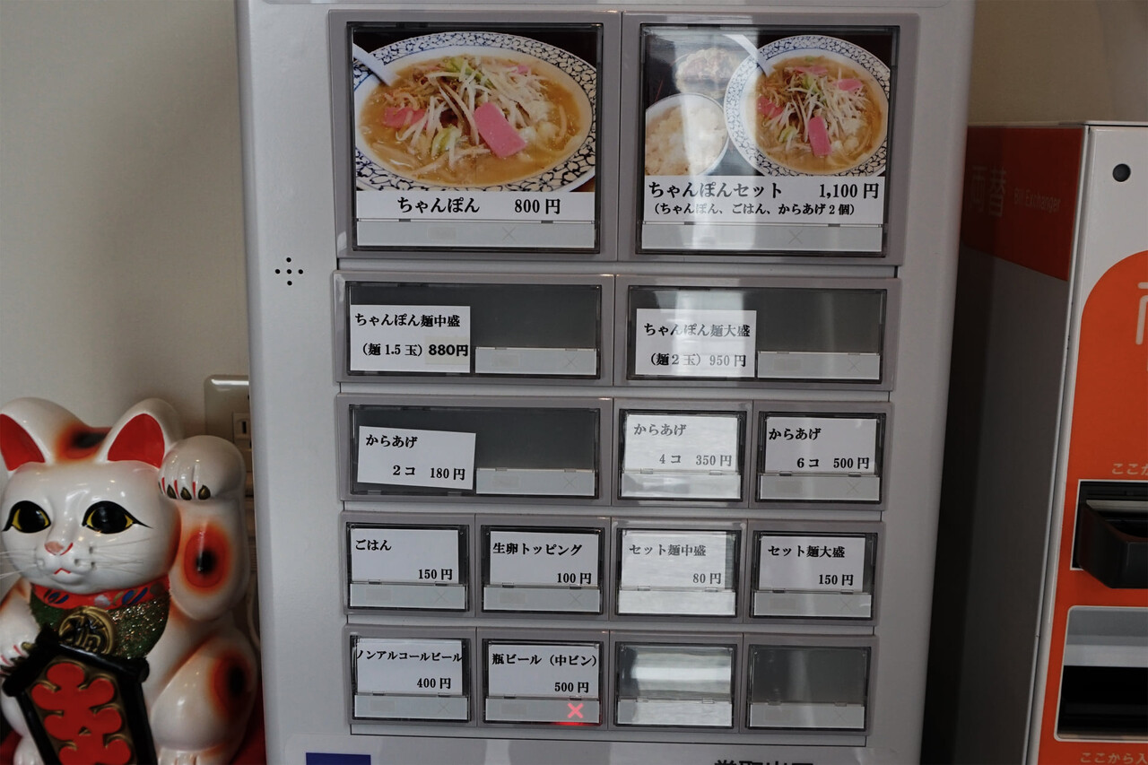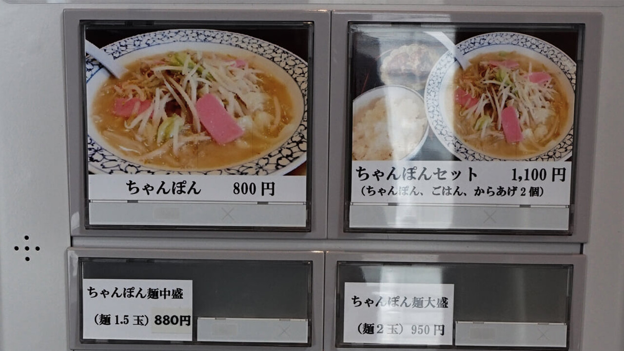 メニューの麺類はちゃんぽんのみです。