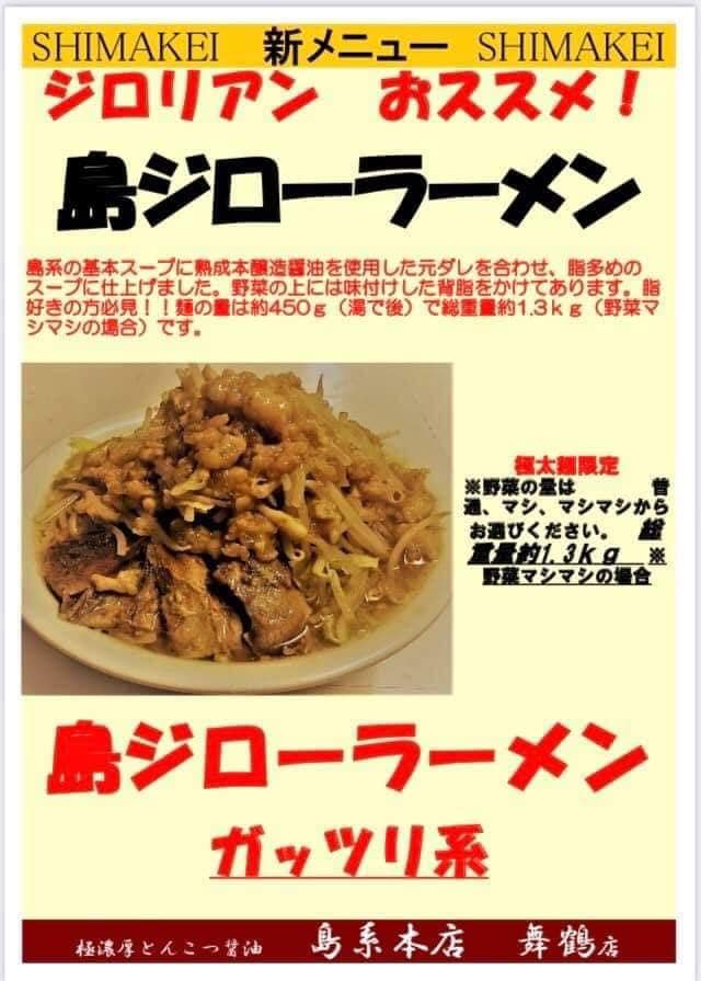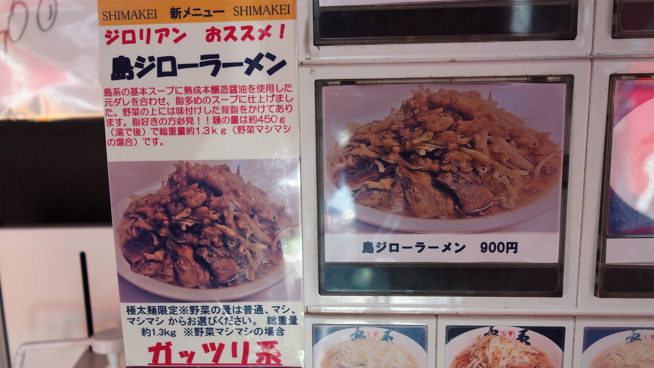 ジロリアンにオススメの新メニュー『島ジローラーメン』900円を発見。