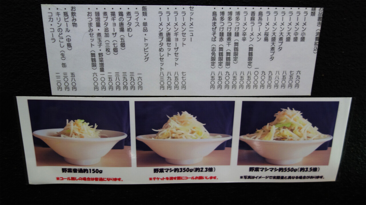 野菜の量は、普通(150g)・マシ(350g)・マシマシ(550g)から選びます。※無料