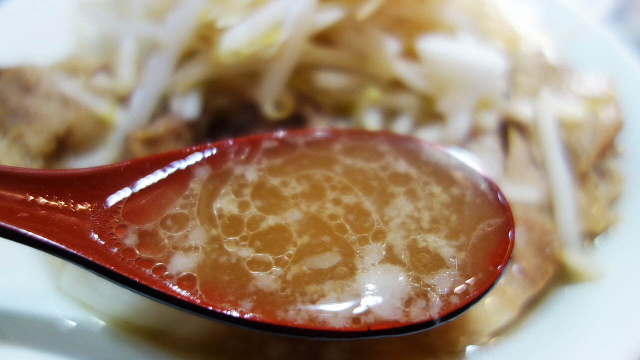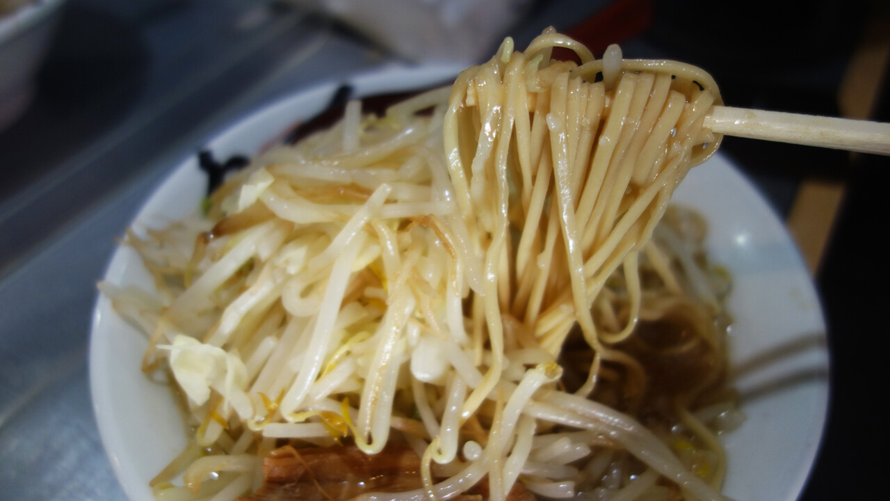 もともとのスープの味があまり濃くないので、食べているうちにモヤシの水分が出てスープが薄まります。