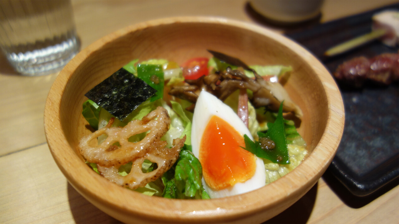 福岡式焼鳥店だと、お通しは生キャベツの酢ダレ掛けで、キャベツの上に串が置かれていくのですが、