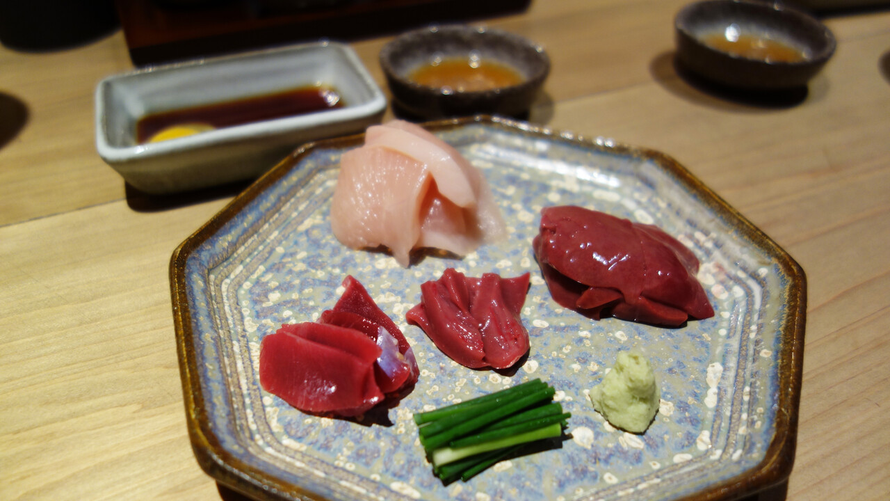この日はお刺身があるということで、鶏刺の盛り合わせを頂きました。