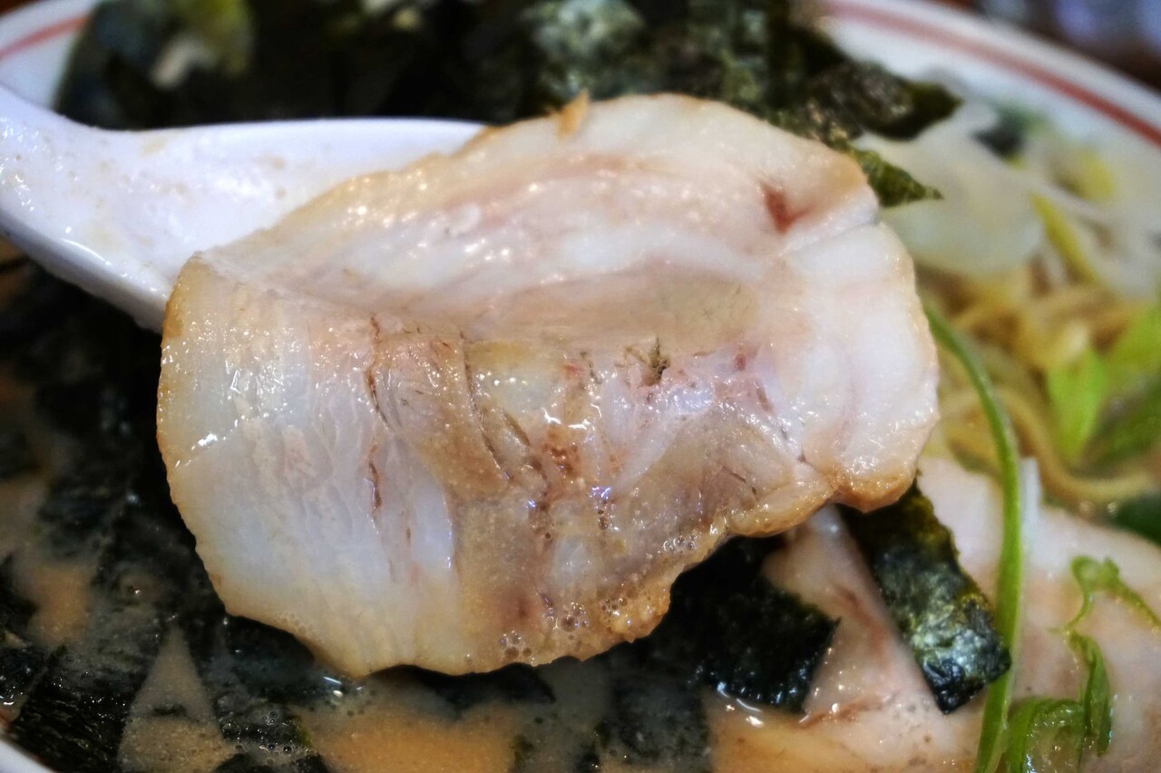 スープはまさに爆濃。重めのスープに甘みの強い醤油味が、胃袋にガツンと響きます。