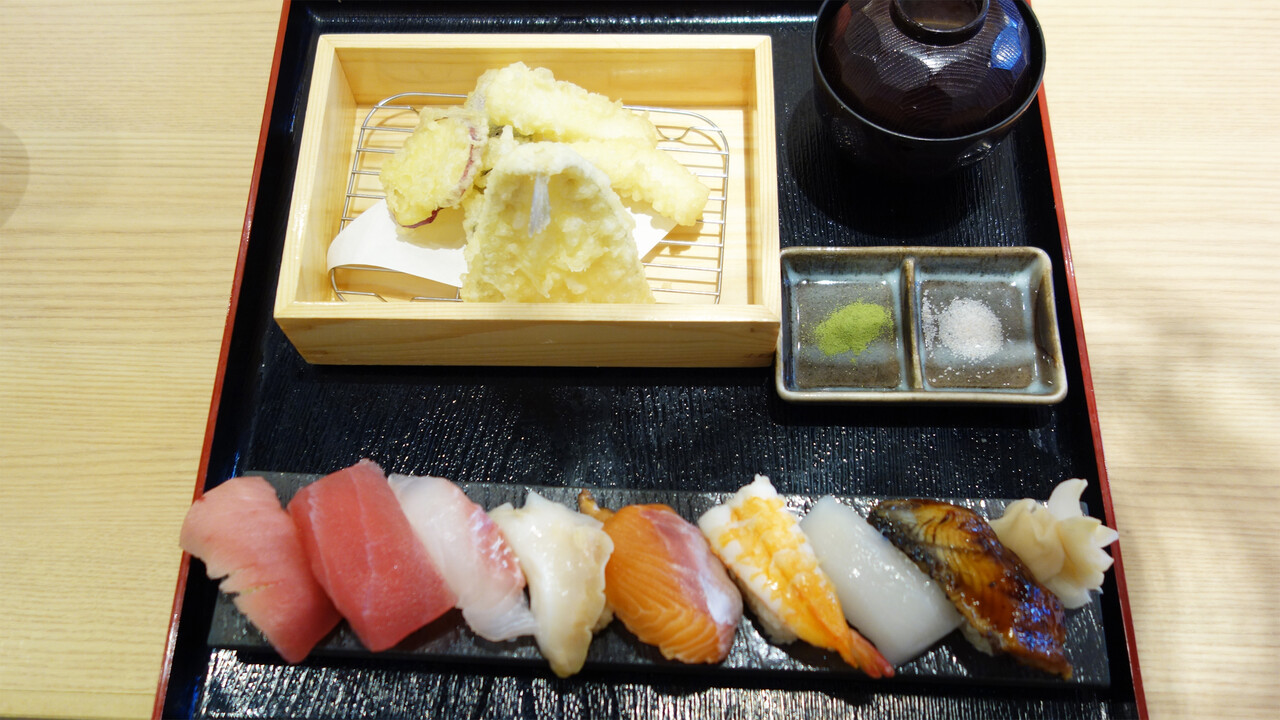 こちらは、友人の天ぷら寿司定食(上)1,390円。