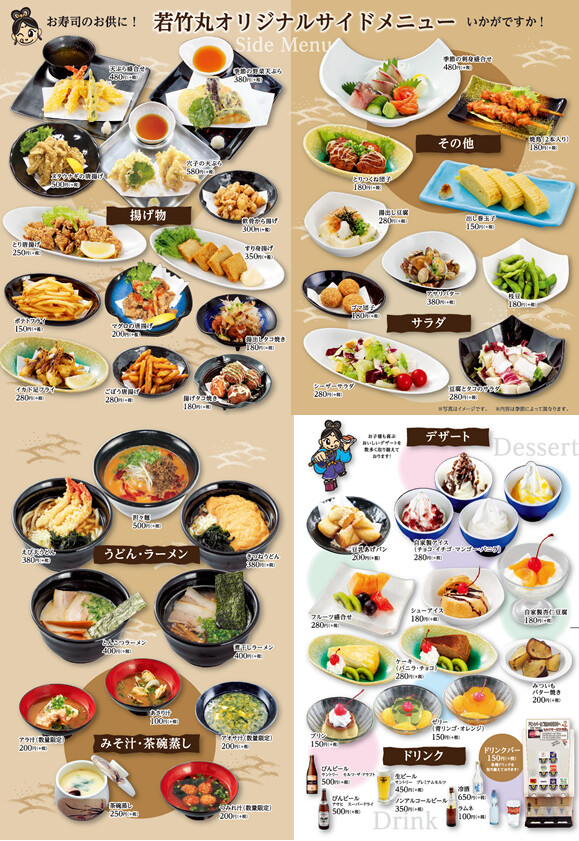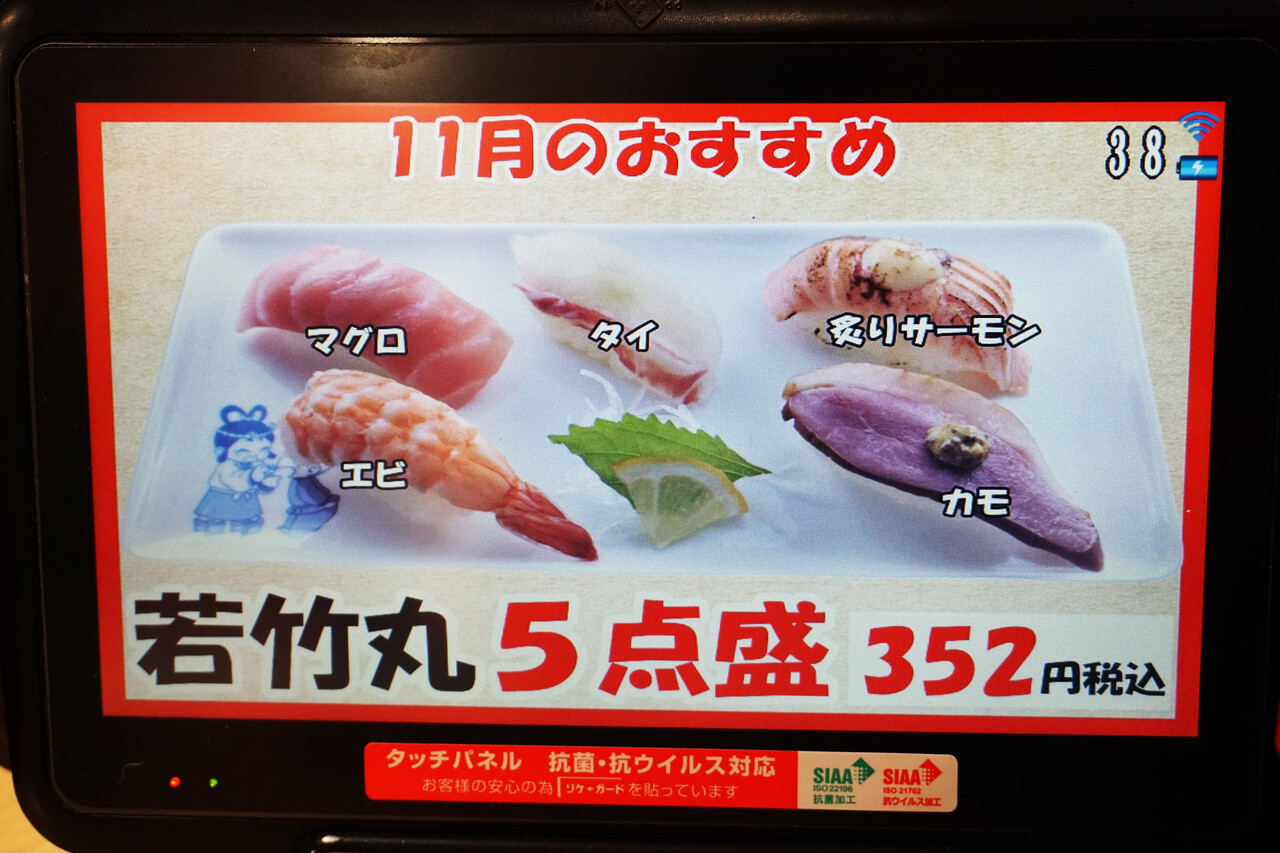 寿司のメニューは勿論、サイドメニューや麺類、限定おすすめネタなど豊富なメニューが揃っていて、すごいラインナップです。