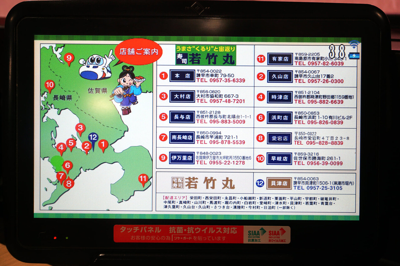 長崎県諫早市にある、回らないフルオーダーの回転寿司『若竹丸 諫早本店』。