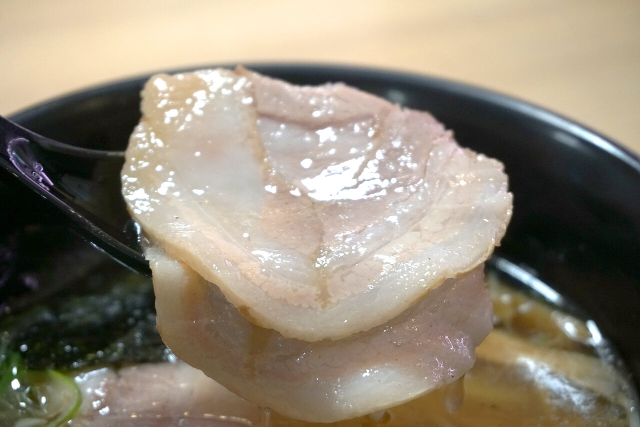 本格的な豚バラチャーシューもトッピングされています。